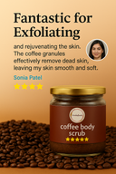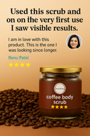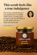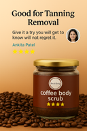 Experience the visible transformation with every use. Before using the scrub, skin often feels dull, uneven, and burdened with tan and rough patches—especially on areas like elbows, knees, and underarms. With regular exfoliation, this gentle blend of pure Arabica coffee and nourishing coconut oil buffs away dead skin cells, unclogs pores, and reduces the appearance of tan and ingrown hair. After just a few uses, your skin feels soft, smooth, deeply refreshed, and visibly radiant—with a healthy, even tone that glows naturally.